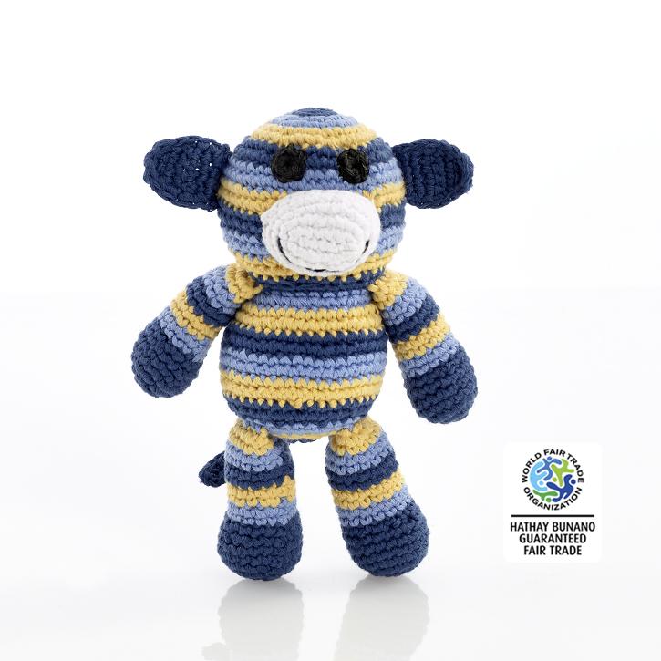 Fair trade, handmade from 100% cotton yarn. Suitable from birth. Machine washable.