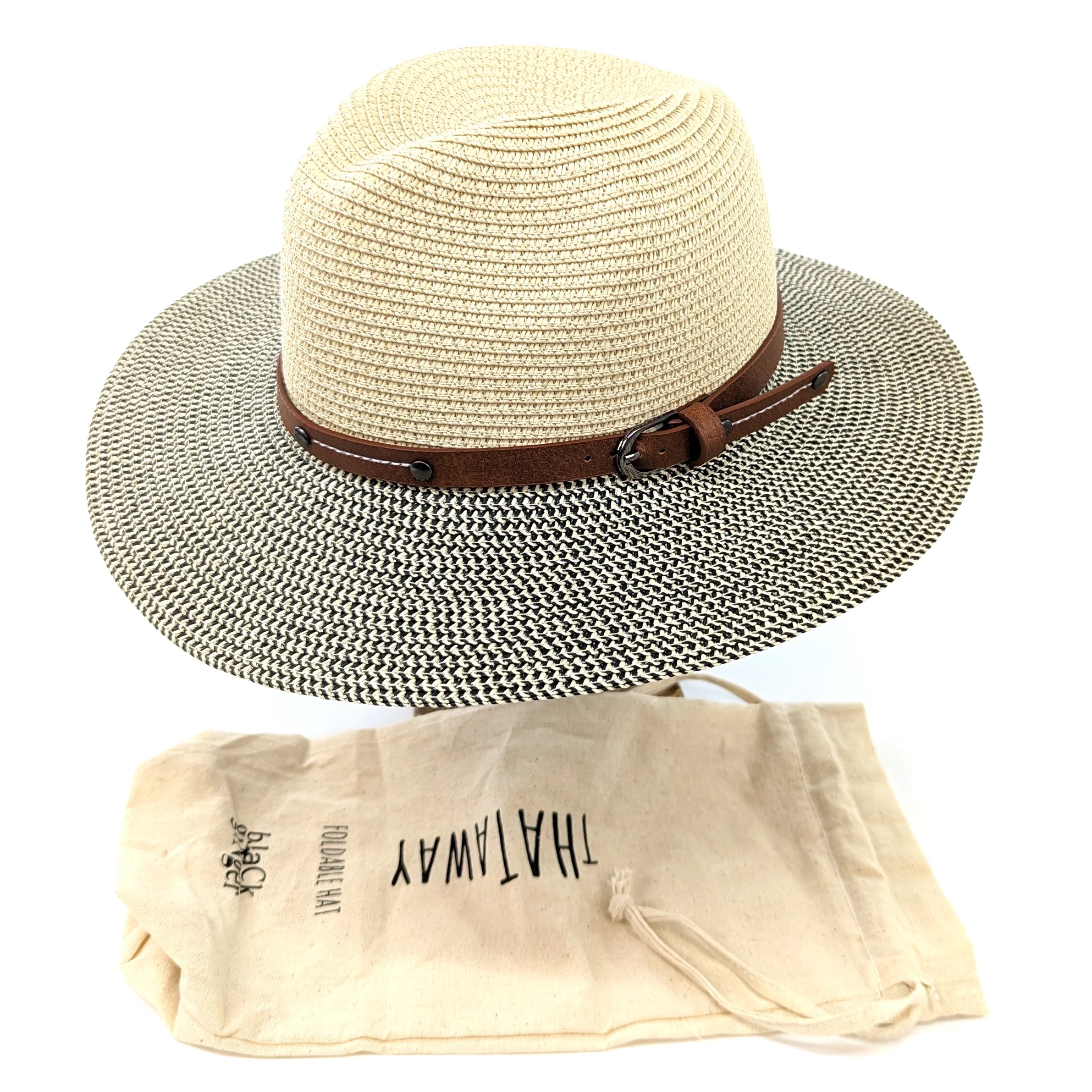 Black Ginger Hat In Bag 2 Tone Panama Mottled/Natural