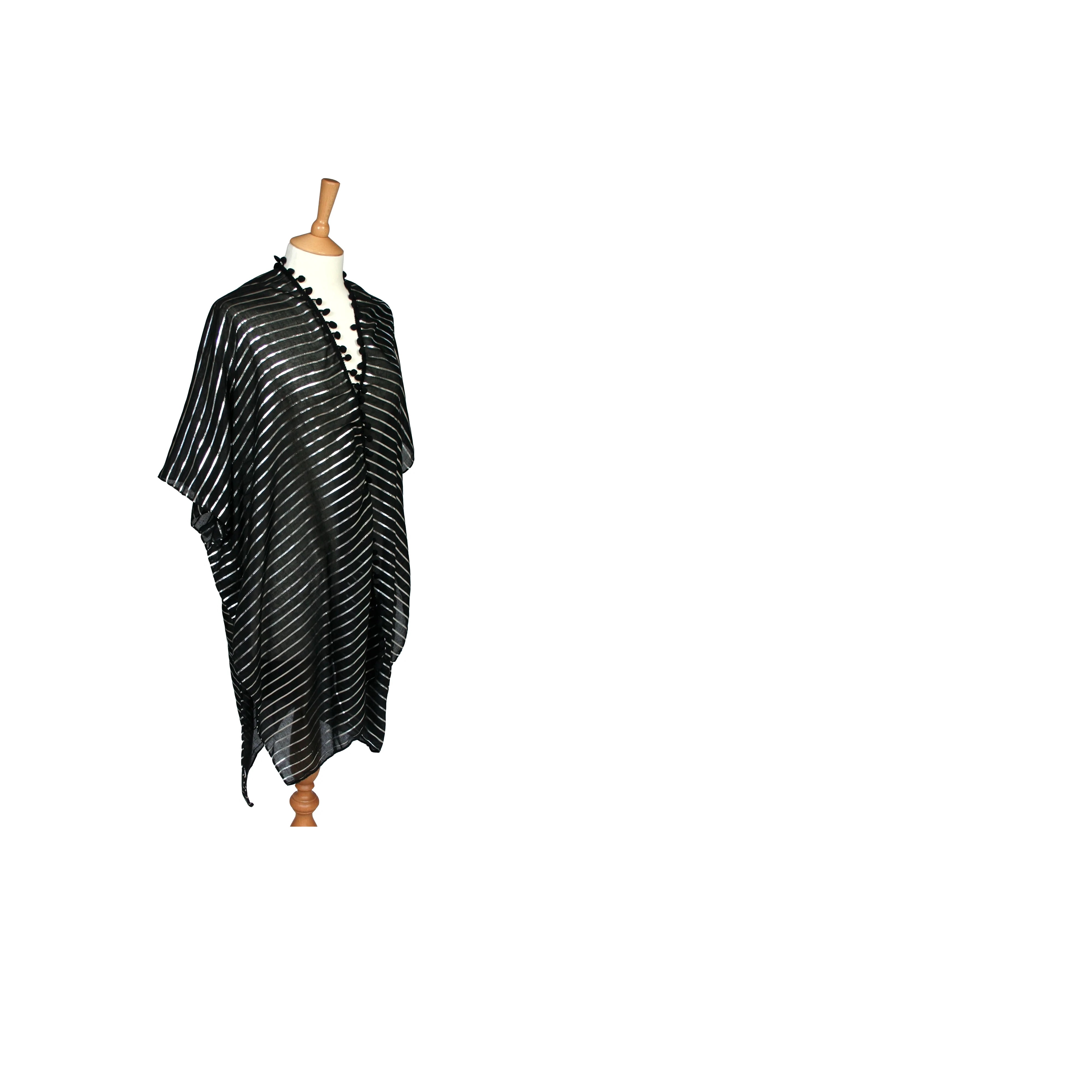 Kneiff - Black PomPom Kaftan - Black/Silver Stripes