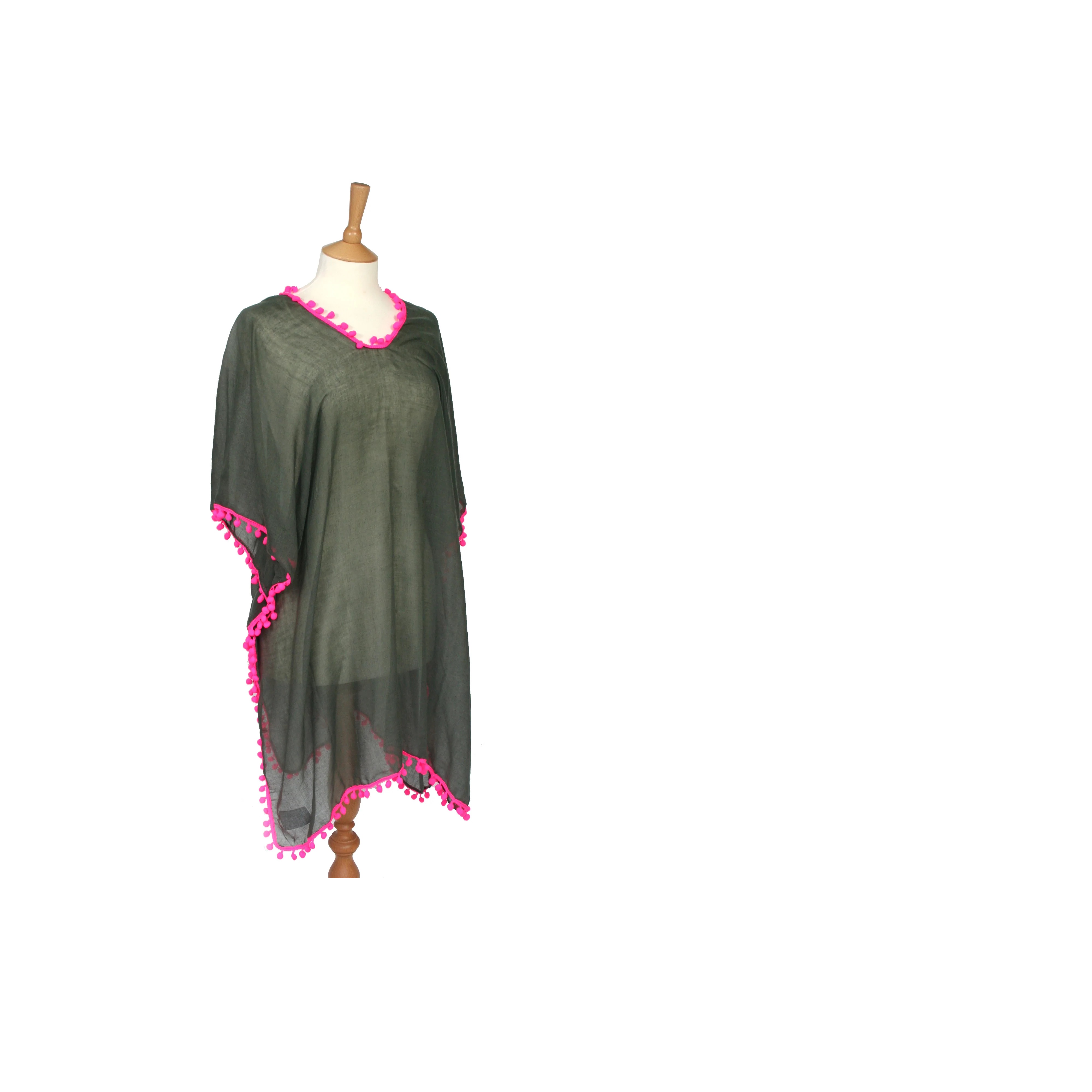 Black Ginger Poncho Neon Pom Pom Grey/Pink