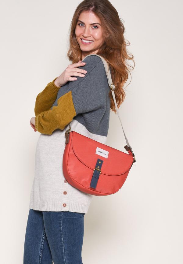 Part of our colour block collection, this stylish saddle bag is made from durable coated cotton canvas and is packed with loads of great features including a magnetic buckle closure, pockets, adjustable strap, cute printed lining and a handy inside zipped pocket.