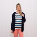 This versatile cardigan comes in a deep navy blue and can be worn with a lovely draped look when open or buttoned up for a more cosy look. Crafted from a cotton rich fabric, its been designed with care and made for living.