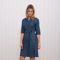 This flattering dress is made from a cotton denim and can be adjusted for different fits. Its versatility means it can be worn casual or adjusted by a draw cord for a more feminine fit.