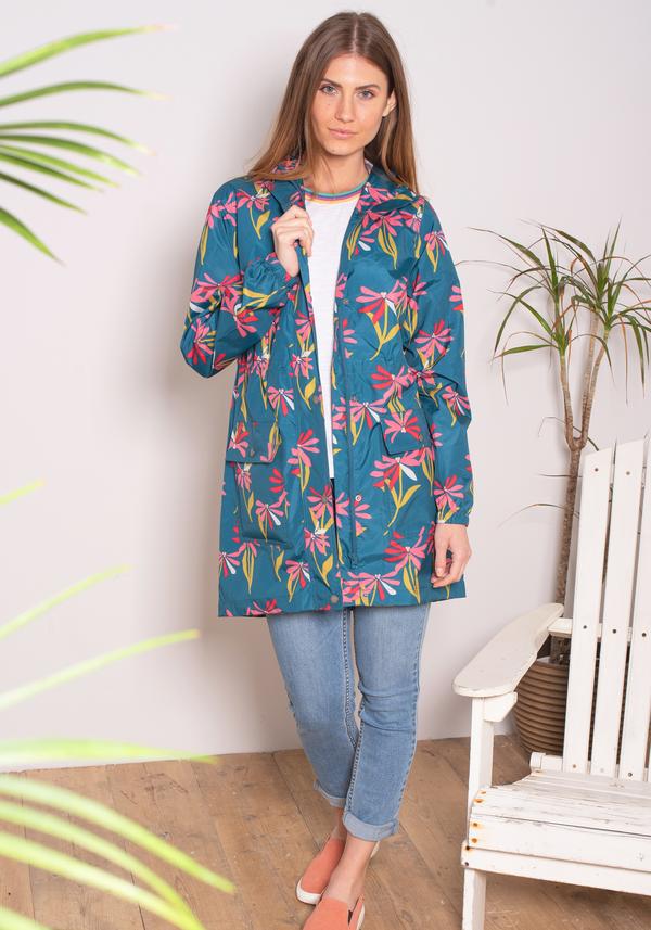 This pretty printed jacket is lightweight and super comfortable. It features two deep pockets on the front and a zip and velcro fastening to stop the rain from getting in. Pack it away in your bag and take it with you on all your walks – just in case