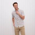Add a bit of fun to your wardrobe with our geo floral shirt! With a subtle yet interesting look, this shirt is made from a cotton linen blend that will keep you cool this summer.