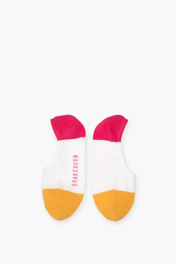 Coming in one size, these invisible cream socks are made from a soft organic cotton blend and have a bold pink and orange stripe design.