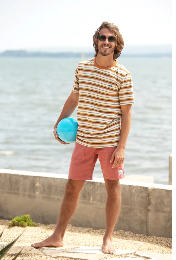 Step out in stripes wearing this classic short sleeved, 100% cotton, crew neck t-shirt.