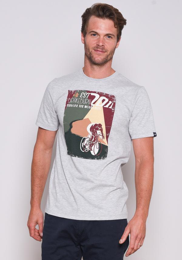 Our cool Vintage Bike Poster Tee is made of a washed vintage marl jersey fabric and features a cool bike print. This classic cut crew neck mens t-shirt looks great on its own, but also works well under a buttoned shirt or sweatshirt. It also features a branded label at the sleeve and hem.