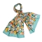 A long silk scarf in Flower Patch a delightful floral design with in our characteristic vibrant colours of orange red yellow aqua and green and finished with a deep spotted edge in aqua with white raindrop spots. And with so many colours it would add the perfect finishing touch to almost any outfit!
