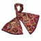A long silk scarf based on a vintage hand-painted design with diagonal brush strokes in tones of burnt orange gold chocolate red and purple finished with a damson border.