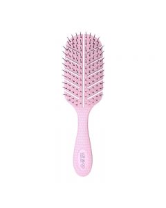 The Lotus Eco-friendly Detangling Brush's leaf shape and double curve design offer more flexibility when brushing the hair and contours to the shape of the scalp for superior comfort. The strong, flexible intelliflex bristles gently bend around tangles without damaging the hair.
