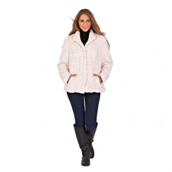 LADIES SHORT CHISELLED FAUX FUR COAT WITH COLLAR AND POCKETS