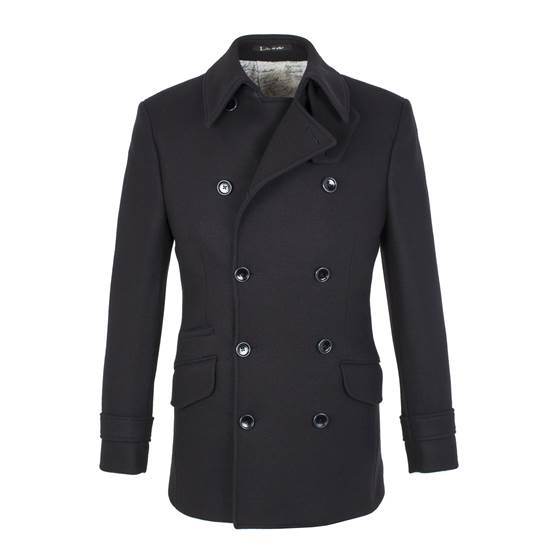 This double breasted peacoat is a wardrobe staple made from a virgin wool and cashmere blend fabric it has a truly luxurious look and feel. Details include a fixed cuff and back belt features as well as a detachable throat tab neck closing. The interior is buggy lined utilising our seasonal unique print 'The Script' as well as our co-ordinating unique print pocket lining. Individually numbered and limited to 200 pieces.