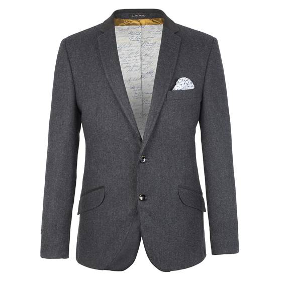 This two button wide herringbone jacket is made from a wool and cashmere blended British cloth to give a luxurious look and feel. Black soft handle fabric is used at the top collar and the cuff inserts to provide a subtle textural and tonal contrast. While a functioning four button curved cuff provides additional detail. The interior is fully lined utilising our seasonal unique print 'The Script' as well as our co-ordinating unique print pocket lining. Individually numbered and limited to 200 pieces.