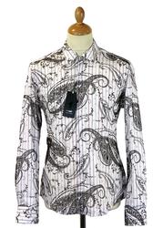 Padua Mens Retro Shirt by 1 Like No Other - Padua is a City in Northern Italy and setting for a large part of Shakespeare's The Taming of The Shrew which cleverly continues the Shakespearean theme of this seasons 1 Like No Other collection. This fab Sixties Mod flock paisley shirt is complimented by striking Retro stripe detail and cool button detail. As with All 1 Like No Other Shirts Padua is limited edition to ensure exclusivity.