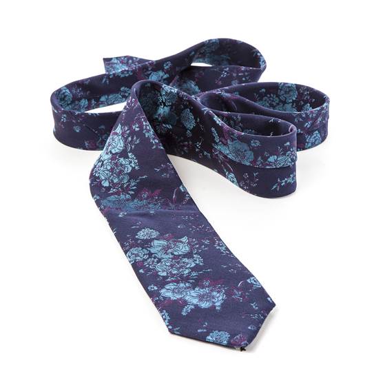 Made in England using 100% silk this rich purple tie features a metallic aqua floral design with plum highlights. Fully lined with our signature black lining and embroidered logo. Individually numbered and limited to 200 pieces.