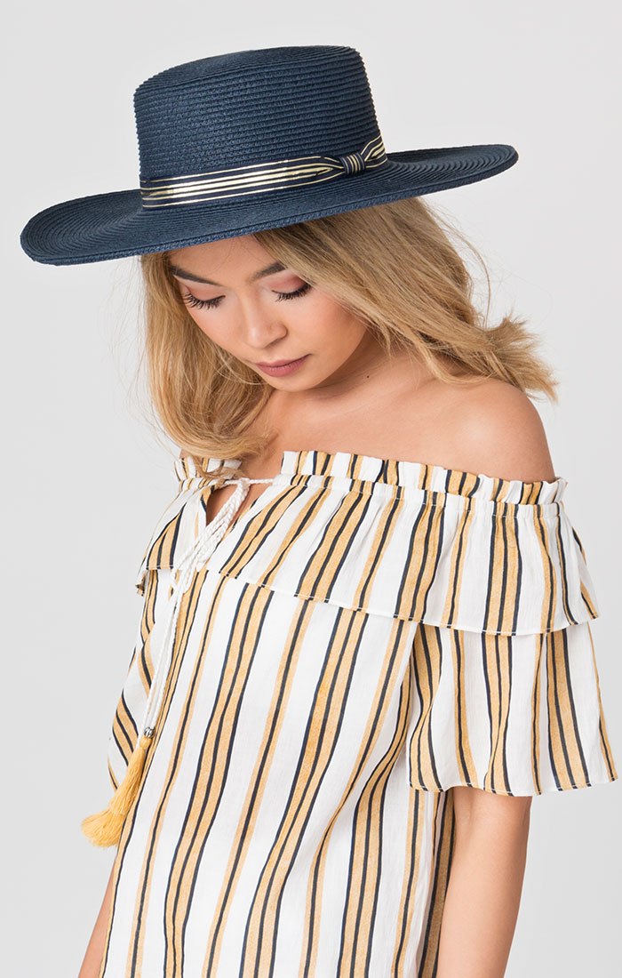 Navy Boater Hat with a Full Brim