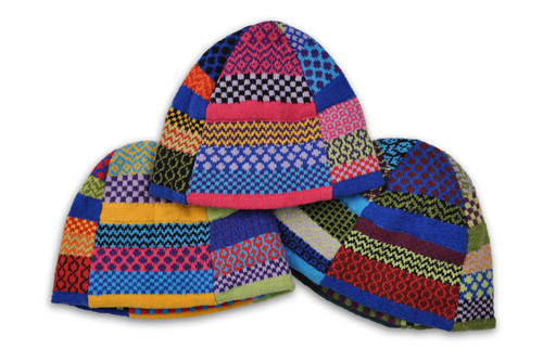 These beautiful hats are made in a patchwork style each hat is a unique combination of colours and patterns.