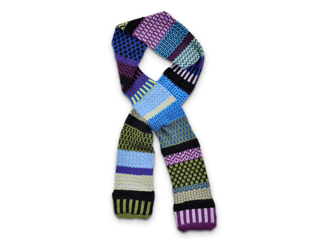 Our Scarves are four to four and a half feet long. They are knit as a tube scarf but when laid flat they are about four inches wide. Perfect for wrapping around cold necks on chilly afternoons. They are made from recycled cotton and arrive as an assorted mix of colours. Where possible we will try and contact you to let you know what colour mixes we have in stock!