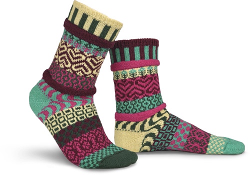 Our Zinnia sock brings the cool fresh colours of cream pink sea foam green forest green and cranberry! A lovely mix of colour and design have you spotted the hearts? These socks are a perfect gift for someone special!